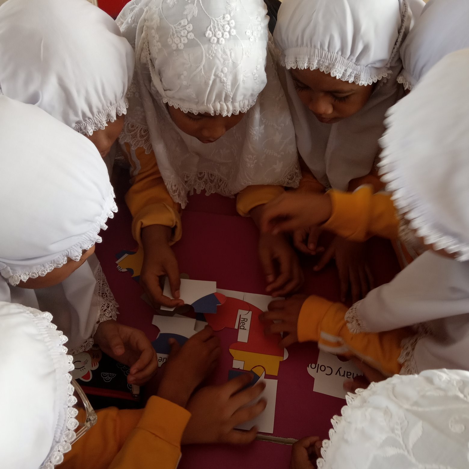 After they form the puzzle the teacher will go to each group and ask them to enumerate what are the colours they’ve got.